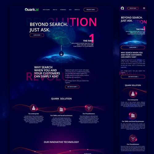 Our goal is to replace search with question answering. Our motto is: Why search when you can just ask? Our goal is to m